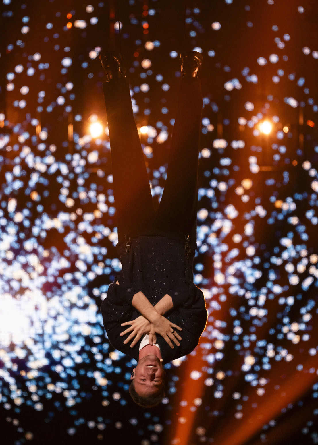Deo koreografije za nastup bilo je pevanje dok visi naglavačke, što simbolizuje kako im se život nakon suprugine dijagnoze preokrenuo za 180 stepeni, a završava se na najemotivniji mogući način – s Mojcom, koja se pojavila iza njega u romantičnoj dugoj beloj haljini.