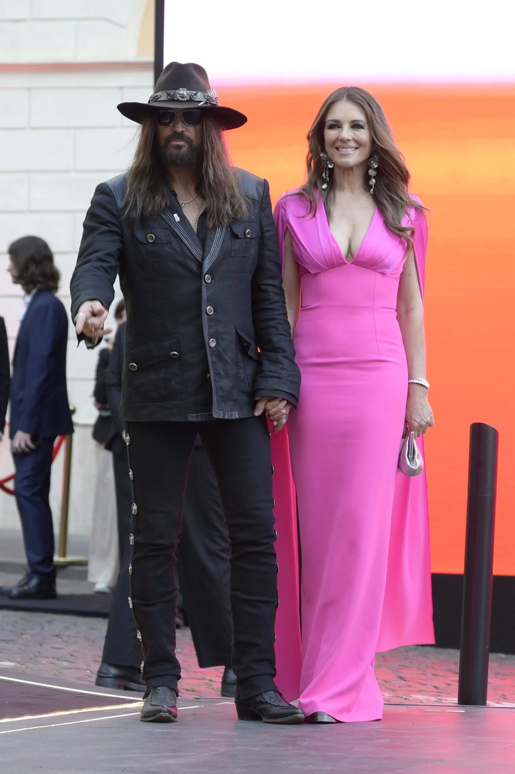 I dok se glumica odlučila za roze toaletu brenda "Safiyaa" - koja prati liniju tela i ističe njen duboki dekolte, Bili je ostao veran svom kaubojskom stilu.