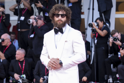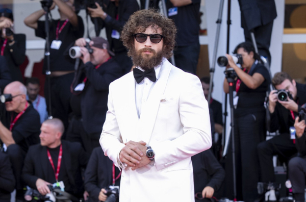 Glumac je za ovu priliku nosio crne pantalone u kombinaciji sa belim sakoom, ali svi su gledali u njegovu frizuru i bradu.