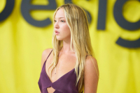 Za tu priliku odlučila je da ponese slip haljinu u nešto tamnijoj ljubičastoj boji koju krase zanimljivi žuti detalji na rubovima.