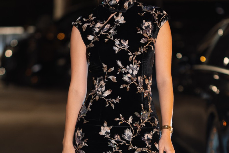 Uz cvetnu, baršunastu mini haljinu "Sau Lee", koja prati njenu vitku liniju i naglašava duge noge s dozom zavodljivosti u vidu malog šlica na butini, nosila je jedan od najprepoznatljivijih modela torbica brenda Polène, kao i moderne cipele sa špicastim vrhom.