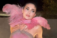 Kajli je odabrala roze kreaciju sa golim leđima i detaljima od perja koji se nalaze oko vrata i oko struka, a po svemu sudeći, haljina je bila i providna na grudima. Sve to u paketu je podsećalo na pravo malo "vilinsko izdanje", kako su je mnogi opisali.