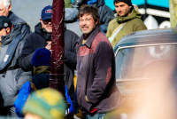 U neprepoznatljivom izdanju, razbarušene kose, krvav, ali nasmejan, pozdravio je fanove u Amsterdamu gde boravi trenutno zbog snimanja filma "The Riders".