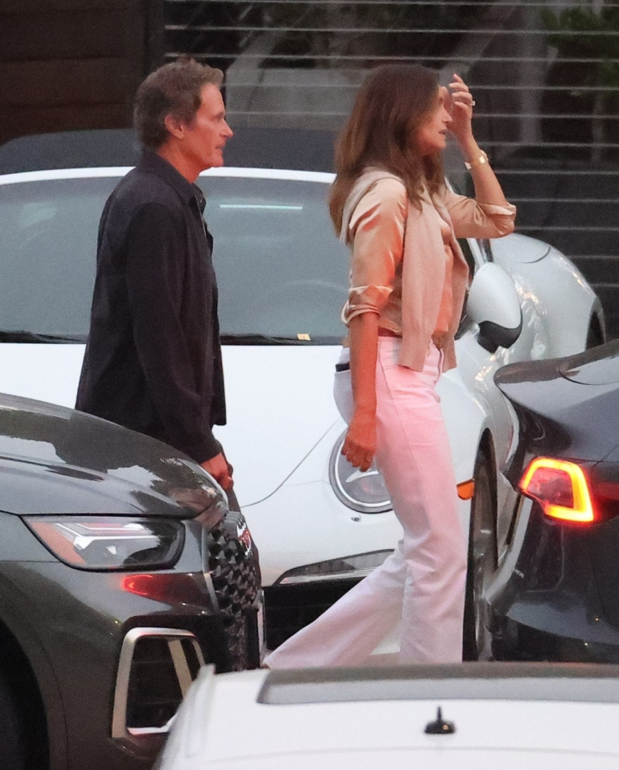 Nekadašnji supermodel Sindi Kraford, uhvaćena je u izlasku na večeru sa suprugom Randeom Gerberom, te je privlačila poglede u jednostavnoj odeći i, čini se, njenom omiljenom komadu garderobe u letnjim mesecima - belim farmerkama.