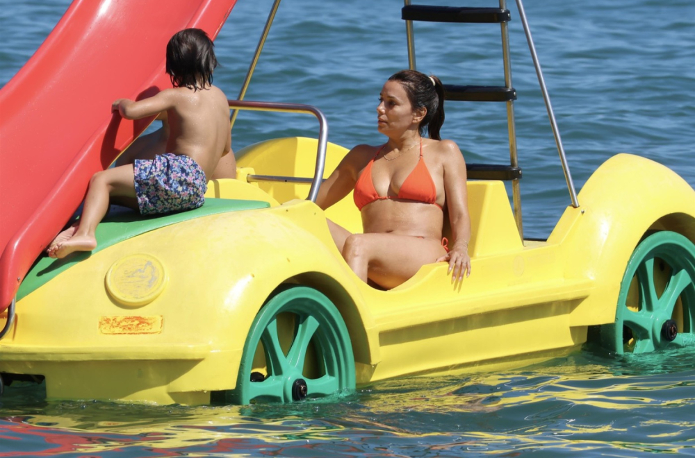 Društvo na ovom putovanju pravili su joj suprug i reditelj Hose Baston i njihov sin Snatjago. Kako se vidi, mala porodica uživala je u zajedničkim aktivnostima, a pažnju paparaca privukla je Evina figura.
