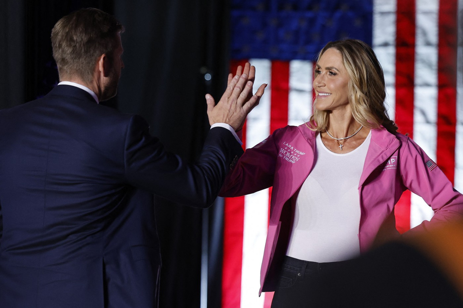 Reč je o ženi Trampovog sina Erika - Lara Tramp. Ona je uz Melaniju slavila Donaldovu pobedu na izborima, te je ponosno stajala pored njega.