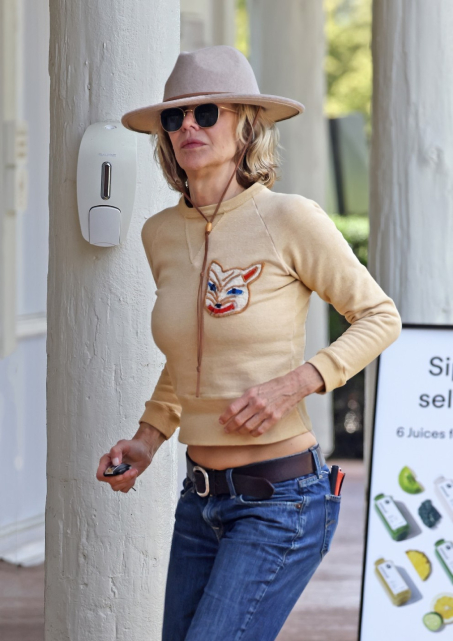 Duge farmerke niskog struka, kratak džemper koji otkriva ravan stomak, patike, sunčane naočare i šešir doprineli su tome da glumica privuče pažnju, naročito što je ne viđamo često u privatnim izdanjima.